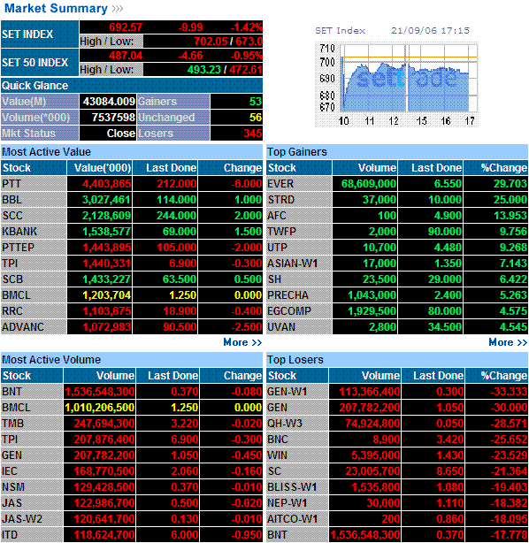 - SET index falls 4.2% on 1st trading day following coup Archived 2007-09-26 at the Wayback Machine, 21 November 2006
