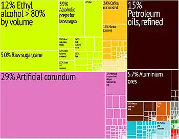 Export goods | alumina, bauxite, chemicals, coffee, mineral fuels, waste and scrap metals, sugar, yams |