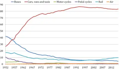 - "Department for Transport Statistics: Passenger transport: by mode, annual from 1952".