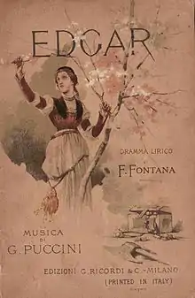 Edgar is an operatic dramma lirico in three acts (originally four acts) by Giacomo Puccini to an Italian libretto by Ferdinando Fontana, freely based on the play in verse La Coupe et les lèvres by Alfred de Musset.