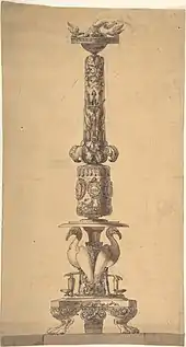 While in Rome he made sketches for a panorama of that city; these he enlarged, and exhibited about 1844 for a short time in a gallery in Great Portland Street. He etched Original Sculptural Designs, which he had executed in Rome, and published them in folio in 1840.[1]