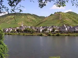 Even older traces of settlement – remnants of a stone wall of a flight castle from Celtic times – can be found on the Hochkessel, the mountain on the other side of the Moselle. On the side of the Moselle facing towards the Hunsrück is a Roman-Gaulish burying ground near Saint Peter's Chapel (Peters-Kapelle) in Neef.