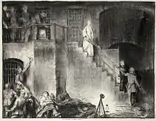 Another representation of a side of Cavell during the First World War saw her described as a serious, reserved, brave, and patriotic woman who devoted her life to nursing and died to save others. This portrayal has been illustrated in numerous biographical sources, from personal first-hand experiences of the Red Cross nurse. Pastor Le Seur, the German army chaplain, recalled at the time of her execution, "I do not believe that Miss Cavell wanted to be a martyr ... but she was ready to die for her country ... Miss Cavell was a very brave woman and a faithful Christian".[3] Another account from Anglican chaplain, the Reverend Gahan, remembers Cavell's words, "I have no fear or shrinking; I have seen death so often it is not strange, or fearful to me!"[11] In this interpretation, her stoicism was seen as remarkable for a non-combatant woman, and brought her even greater renown than a man in similar circumstances would have received.[18]