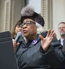 ![]() Edith Savage-Jennings speaking in the 2017 Women's March in Trenton, New Jersey | |