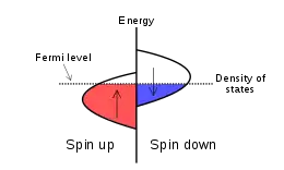 Electron bands can spontaneously split into up and down spins. This happens if the relative gain in exchange interaction (the interaction of electrons via the Pauli exclusion principle) is larger than the loss in kinetic energy.