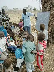 A number of NGOs have been instrumental in increasing the number of educational services in the region, like UNICEF's "Go to School" campaign. After the brief respite in the civil war in 2005, the number of students attending southern Sudanese schools more than quadrupled, with 34 percent female.[3]