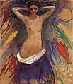 In 1881, Munch enrolled at the Royal School of Art and Design of Kristiania, one of whose founders was his distant relative Jacob Munch. His teachers were the sculptor Julius Middelthun and the naturalistic painter Christian Krohg.[12] That year, Munch demonstrated his quick absorption of his figure training at the Academy in his first portraits, including one of his father and his first self-portrait. In 1883, Munch took part in his first public exhibition and shared a studio with other students.[13] His full-length portrait of Karl Jensen-Hjell, a notorious bohemian-about-town, earned a critic's dismissive response: "It is impressionism carried to the extreme. It is a travesty of art."[14] Munch's nude paintings from this period survive only in sketches, except for Standing Nude (1887). They may have been confiscated by his father.[15]