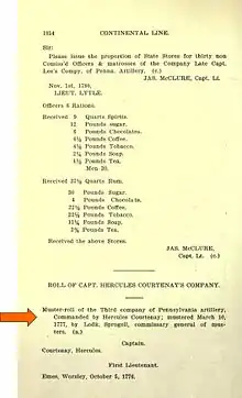 - Records of the Comptroller General Military Accounts Line, 1775 to 1809, Fourth Continental Artillery, David Library of the American Revolution, microfilm record RG4 #386