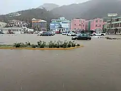 Eight days after Hurricane Irma passed, the Territory experienced torrential downpours of rain. Because the hills had been stripped of vegetation by the hurricane, this resulted almost immediately in extensive flooding of low-lying areas, including the capital, Road Town.