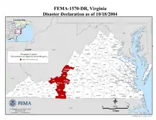 - Michael D. Brown (October 18, 2004). "Federal Register Notice: Major Disaster Declaration for the Commonwealth of Virginia". Federal Emergency Management Agency. Retrieved April 3, 2010.