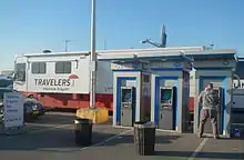 During a news conference on November 1, Mayor Bloomberg announced that most parks would reopen on November 3; that Coney Island, the Rockaways, and parts of Staten Island would get temporary centers for the distribution of meals and bottles of water at a time; that AT&T would bring cellphone-charging and cell service-enabled pods to certain areas of New York City; and that 400 members of the National Guard were to go door-to-door to deliver meals and supplies to elderly and home-bound residents.[32] A relief fund was created for residents of Staten Island. Time Warner Cable donated $500,000 to the Mayor's Fund to Advance New York City, and $50,000 each to the Red Cross of Northeastern New York and the Red Cross of Northern New Jersey. They also sent out vehicles with mobile charging stations and free WiFi access points, as well as opened all its WiFi spots in the city.[33]