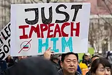 There was a brief debate about impeaching the president before a privileged resolution introduced by Representative Al Green was withdrawn.[81][82] In late October, progressive activist hedge-fund manager Tom Steyer funded an impeachment campaign that quickly garnered 1.3 million signatures.[83] By mid-November, the campaign had garnered over 1.9 million signatures.[84] As of December 2018, the campaign's signature count is over 6.5 million.[85]