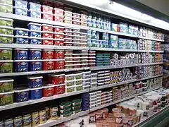 Annual consumption of pickled cheeses was estimated at 4.4 kilograms (9.7 lb) in 2000.[14] In 2002 it was estimated that more than one third of Egyptian milk production was used in making traditional pickled cheeses or ultrafiltered feta-type cheeses.[18] The domiati cheese now contains less buffalo milk than in the past. The fat from cows' milk is replaced in part by vegetable oils to reduce cost and retain the white color expected by consumers. Various other changes have been introduced such as mandatory heat treatment of the milk, but manufacturers have striven to retain the familiar taste, texture and appearance of the cheeses.[14]