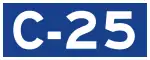 According to the current coding for highways managed by the Generalitat de Catalunya, the first number C-25 indicates that is mainly a west-eastbound highway, and the second number C-25 indicates that is the fifth southernmost. The road begins at the intersection with Autovía A-2, near Cervera (comarca of Segarra), and finishes at Cassà de la Selva (comarca of Gironès), with a total length of 141 km.