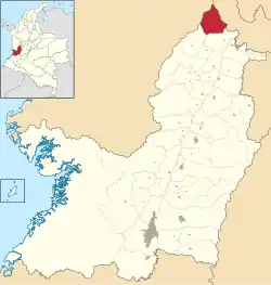 ![]() Location of the municipality and town of El Águila in the Valle del Cauca Department of Colombia. | |