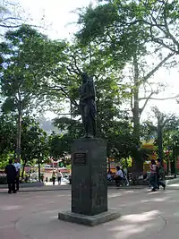 The hub of activity in El Hatillo Town is Bolívar Plaza (Spanish: Plaza Bolívar), a garden square encompassing the central block in the town of El Hatillo. Constructed in 1785, the Plaza was originally called Plaza Mayor or Plaza del Mercado. In 1911, a bust honoring Manuel Escalona was placed in the square, which was renamed in his honor. In 1952, the bust was replaced with a statue of Simón Bolívar, and the plaza was again renamed after the Venezuelan hero.[20] Across from the Bolívar Square is the 18th century Santa Rosalía de Palermo Church, which was declared a National Historic Monument in 1960.[12]