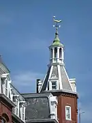 Boyden also worked on at least three churches during this time. The first of these (1856), the Congregational Church at Brookfield, hangs on to the Romanesque, and has much in common with the slightly later work of John Stevens of Boston.[16] He was also commissioned to build the 1858 Town House, which was originally the 1858 Townhouse, in Sherborn, Massachusetts, with a bequest from Thomas Dowse's will. It is now listed on the National Register of Historic Places.[17] In 1859 Boyden remodeled the Baptist Church at Athol, designing a new facade and tower for the church. The tower was destroyed in 1938.[18] Also in 1859 they remodeled the First Congregational Church in Keene, New Hampshire. Like much of Boyden's work at the time, it featured a monumental Italianate facade.[19] This would be only the first of Boyden's many works in Keene.