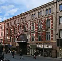 In 1891 the half-acre plot at Torggata 9 was bought by a company, which constructed two buildings which were designed in the New Renaissance style by architect Harald Olsen. Along Torggata was a four story building which contained business locations; inside was a courtyard with an area for shows and concerts with seats for 1600 people. In the summer of 1903, the inner building was leased to Fahlstrøms Theater. Architect Bull designed a fan-shaped baldachin in glass over the door along Torggata, together with a glass roof over the theater building. The theater was used for 8 seasons before it went into bankruptcy, and presented its last performance in August 1911. Two days later, a cinema opened in the same building. After a few years this was taken over by a Swedish company and renamed to Admiral Palads.