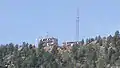 Near the top of the mountain is a large antenna field with two buildings overlooking the steep slope on the east. The radio station KBCO transmits from this site. The site is reached by a private dirt road that starts further south in Plainview (a small community with less than a dozen homes) and then climbs the steep southern flanks.