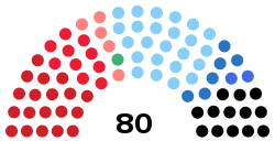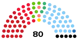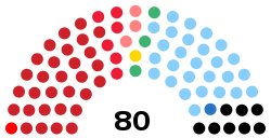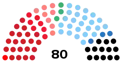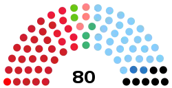 | Coalitions and parties | Votes | % | +/- | Seats | +/- | ![]() Seats by party — ![]() Seats by coalition |