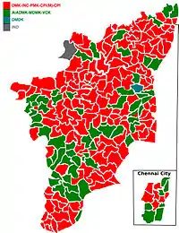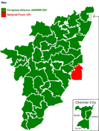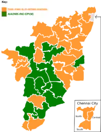 2004: Newly formed alliance DPA, which includes INC alliance (DMK, PMK, MDMK) and Left Front swept the state winning all 39 seats. UPA wins the election nationally and DMK-PMK-MDMK was part of the INC government under Manmohan Singh, while the Left Front (CPI & CPI(M)) gave outside support.