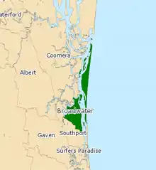 Broadwater is an electoral district of the Legislative Assembly in the Australian state of Queensland. It was created at the 1991 redistribution.[1]