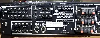 A jack is a connector that installs on the surface of a bulkhead or enclosure, and mates with its reciprocal, the plug.[35] According to the American Society of Mechanical Engineers,[36] the stationary (more fixed) connector of a pair is classified as a jack (denoted J), usually attached to a piece of equipment as in a chassis-mount or panel-mount connector. The movable (less fixed) connector is classified as a plug (denoted P),[36] designed to attach to a wire, cable or removable electrical assembly.[37] This convention is currently defined in ASME Y14.44-2008, which supersedes IEEE 200-1975, which in turn derives from the long-withdrawn MIL-STD-16 (from the 1950s), highlighting the heritage of this connector naming convention.[35] IEEE 315-1975 works alongside ASME Y14.44-2008 to define jacks and plugs.