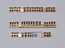 - Wood mouldings with grooves cut for single conductor wires, covered by a wooden cap strip. These were prohibited in North American electrical codes by 1928. Wooden moulding was also used to some degree in the UK, but was never permitted by German and Austrian rules.[21]
