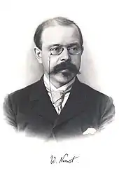 Walther Hermann Nernst developed the theory of the electromotive force of the voltaic cell in 1888. In 1889, he showed how the characteristics of the current produced could be used to calculate the free energy change in the chemical reaction producing the current. He constructed an equation, known as Nernst equation, which related the voltage of a cell to its properties.[15]