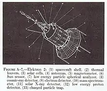 Elektron (Russian: электрон) ('electron'), in American sources sometimes called Electron,[1] was the first Soviet multiple satellite program, comprising two identical pairs of particle physics satellites launched by the Soviet Union in 1964. The four spacecraft simultaneously monitored the lower and upper Van Allen radiation belts and returned a considerable volume of data regarding radiation in space and atmospheric conditions to an altitude of more than 58,000 kilometres (36,000 mi) above the Earth. Two of the four launched satellites are still in orbit as of 2020, the other two having reentered.