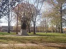 Elizabeth, originally called "Elizabethtown" and part of the Elizabethtown Tract, was founded in 1664 by English settlers. The town was not named for Queen Elizabeth I as many people may assume, but rather for Elizabeth, wife of Sir George Carteret,[26] one of the two original Proprietors of the colony of New Jersey.[27][28][29] She was the daughter of Philippe de Carteret II, 3rd Seigneur de Sark and Anne Dowse. The town served as the first capital of New Jersey.[30] During the American Revolutionary War, Elizabethtown was continually attacked by British forces based on Manhattan and Staten Island, culminating in the Battle of Springfield which decisively defeated British attempts to gain New Jersey. After independence, it was from Elizabethtown that George Washington embarked by boat to Manhattan for his 1789 inauguration.[31] There are numerous memorials and monuments of the American Revolution in Elizabeth.[32]