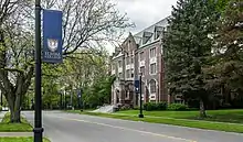 The school's colors, purple and gold, are seen throughout the traditional campus, consisting mainly of buildings of the Victorian and Collegiate Gothic architectural styles. The colors purple and gold come from both the banners of the women's suffrage movement and the iris, the college flower.