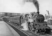 Situated north of the Elstree Tunnels, it was built by the Midland Railway as simply "Elstree" in 1868 when it built its extension to St Pancras station. By the 1920s, it had been renamed Elstree and Boreham Wood station.[6] It was modernised in 1959.[7] The station was renamed from Elstree & Borehamwood to Elstree on 6 May 1974,[8] but reverted to Elstree & Borehamwood by mid 1988.