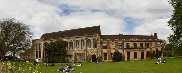 In 1933, Stephen Courtauld and his wife Virginia "Ginie" Courtauld (née Peirano) acquired a 99-year lease on the palace site and commissioned Seely & Paget to restore the hall and create a modern home attached to it. Seely and Paget added a minstrel's gallery and a timber screen to the hall, while creating a design for the main house inspired by Christopher Wren's work at Hampton Court Palace and Trinity College Cambridge.[8]