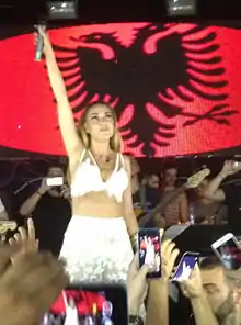 Elvana Gjata (/əlˈvɑːnɑː/; Albanian pronunciation: [ɛlˈvana ɟaˈta]; born 3 February 1987), also known mononymously as Elvana, is an Albanian singer, songwriter, actress, composer and entrepreneur.[2][3][4] Born and raised in Tirana, she has been referred to as the "Diva of Albanian music" and is noted for her versatility in music, performance and presentation.[5][6][7][8] She rose to recognition in the Albanian-speaking Balkans following the release of her two albums, Mamës (2007) and Afër dhe larg (2011), both of which were influenced by r&b and dance-pop. Her success was further solidified with the later released extended play 3 (2018), which incorporated more pop-rock and folk elements. Gjata has received numerous awards and accolades, including two Balkan Music Award, a Festivali i Këngës Award, four Kënga Magjike Awards and a Top Fest Award.[9][10][11][12]