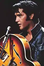 Los Angeles Times deemed Presley's performance "anti-climatic" in comparison to other rock and roll acts of the time. The review assured that Presley "managed to sustain the hour very well", but that "some of the magic was gone, diminished".[33] The Philadelphia Inquirer favored Presley: "What separates real from ersatz stars is the quality of excitement, and this Presley generated seriously whether singing, swinging, chatting with sidemen and an ecstatic audience or pacing relentlessly like a caged animal".[34] Associated Press praised the set design, as well as Presley's appearance that felt "sort of like old times".[35]