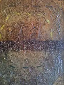 Elwyn Lynn's work was striking, with the use of unconventional painting media and expressive surfaces to construct metaphors for human suffering and endurance. Most of his work was essentially abstract, although a sense of the landscape is often evoked.[3]