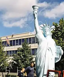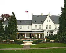 The Embassy of the United States to the Kingdom of Denmark is the diplomatic mission of the United States in Denmark. The building is located on Dag Hammarskjölds Allé, in Indre Østerbro, Copenhagen, and it was opened in May 1954.[1] The post of U.S. Ambassador to Denmark is currently filled by Carla Sands. The embassy also oversees American interests in Greenland.[2] On 10 June 2020, the United States reopened its consulate in Nuuk, Greenland.[3]