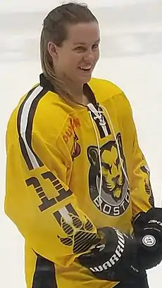 After graduating, she took a year off hockey.[1] She returned to the ice in 2017 to sign her first professional contract with the Connecticut Whale of the NWHL.[2] In her rookie NWHL season, she scored 11 points in 16 games, leading her team in goals, assists, and points, and was one of only two players on the team to finish with a positive plus/minus rating.[3] Her first career NWHL goal came in her hometown, a game-winning goal against the Boston Pride in her second game of the season. She would be named team captain for the Whale for the 2018–19 season. That season, her second in the league, she scored 11 points in 16 games, leading the team in assists, and was named to the NWHL All-Star Game for the second year in a row.[4]