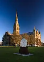 Young's sculpture is held in many public as well as private collections. Some of her permanent installations can be seen in St. Paul's Churchyard and Salisbury Cathedral.[8] Young's Lunar Disc 1 was installed at Loyola University Chicago in 2011.[9]