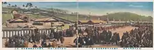 The funeral was held at night (February 7 to February 8, 1927) and consisted of a 4-mile-long procession in which 20,000 mourners followed a herd of sacred bulls and an ox-drawn cart containing the imperial coffin. The funeral route was lit with wood fires in iron lanterns. The emperor's coffin was then transported to his mausoleum in the western suburbs of Tokyo.[20]