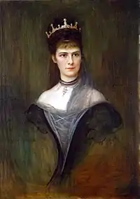 Empress Elisabeth of Austria (born Duchess Elisabeth in Bavaria; 24 December 1837 – 10 September 1898) was Empress of Austria and Queen of Hungary by marriage to Emperor Franz Joseph I. She was born into the royal Bavarian House of Wittelsbach. Nicknamed Sisi (also Sissi),[1] she enjoyed an informal upbringing before marrying Emperor Franz Joseph I at the age of sixteen. The marriage thrust her into the much more formal Habsburg court life, for which she was unprepared and which she found uncongenial. Early in the marriage she was at odds with her mother-in-law, Archduchess Sophie, who took over the rearing of Elisabeth's daughters, one of whom, Sophie, died in infancy. The birth of the heir apparent, Crown Prince Rudolf, improved her standing at court, but her health suffered under the strain, and she would often visit Hungary for its more relaxed environment. She came to develop a deep kinship with Hungary, and helped to bring about the dual monarchy of Austria–Hungary in 1867.