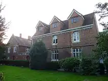 Originally Enfield Town where the school is situated was of some historical significance, being near Edward VI's palace where Elizabeth I lived for a while a princess, including during the final illness of Henry VIII. Edward was taken there to join her, so that in the company of his sister Edward Seymour, 1st Earl of Hertford, could break the news to Edward, formally announcing the death of their royal father in the presence chamber at Enfield, on his knees to make formal obeisance to the boy as King.[4] Later Elizabeth held court there when she was queen (this was remembered in the name Palace Gardens that was a street running behind Pearsons department store and is still recalled in the name of Enfield's shopping centre).[5][6] In 1924, Enfield Court in Baker Street was purchased to accommodate the lower school. For some years, the first year pupils of the grammar school shared it with the first year pupils of Enfield County School, but it is now used for Enfield Grammar School students in years 7 and 8, and its former gardens provide the school with playing fields. The Enfield Loop of the New River passes through the playing fields, and this is the only stretch of the loop without a public footpath on at least one side of it.