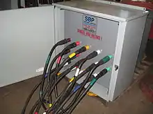 Trailer-mounted generators or mobile generators, diesel generators are also used for emergencies or backup where either a redundant system is required or no generator is on site. To make the hookup faster and safer, a tie-in panel is frequently installed near the building switchgear that contains connectors such as camlocks. The tie-in panel may also contain a phase rotation indicator (for 3-phase systems) and a circuit breaker. Camlock connectors are rated for 400 amps up to 480-volt systems and used with 4/0 type W cable connecting to the generator. Tie-in panel designs are common between 200- and 3000-amp applications.
