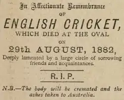 England lost their first home series 1–0 in 1882, with The Sporting Times printing an obituary on English cricket: