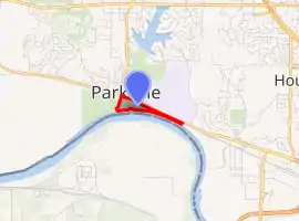 English Landing Park is located along the Missouri river in Parkville, Missouri, United States. The area the park now sits were once just low water areas of the Missouri River.[1] It includes a 3-mile jogging/biking trail that follows the river's edge, several shelters for picnics, a soccer field, a baseball diamond, volleyball courts, 2 playgrounds (one for small kids and one for bigger kids). Recently, a small 9-hole Frisbee golf course has been added around the jogging/biking trail. There is also a busy set of train tracks that runs along the length of the park. The area of present-day English Landing Park was bought from the English Brothers by Colonel George S. Park in 1838, who was a veteran of the Texas war of independence. He purchased a riverboat landing from them as well, and that riverboat landing as well as the present-day park became a civil war port of call for slave trade. The Power Plant Restaurant, which sits right next to the rail road tracks at the entrance to the park, was built in the mid-19th century as a coal-fired twin-boiler power plant that fed the entire city. The city itself was founded by Colonel Park in 1844 and by 1850 he had built warehouses and a large stone hotel. In 1853 he established one of Platte County's earliest newspapers, The Industrial Luminary. Parkville itself did not become a Civil War battlefield, but there was still mass genocide as numerous slaves tried desperately to escape across the river into Kansas for freedom. These slaves were buried in three large but unmarked cemeteries in the present-day Misty Woods subdivision. After the Civil War, the port and the riverboat landing were all but abandoned and the area slowly changed from a bustling port city to what is present-day Parkville.