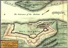 Fort Dauphin was established, in part, by Jean-Baptiste Hertel de Rouville[4] (26 October 1668 – 30 June 1722), a colonial military officer of New France. During Queen Anne's War, he led the French Raid on Deerfield[5] and military operations against the English in Newfoundland. He played a role in the early settlement of both Englishtown (1719-1722) and St. Peter's (1713-1718), Île-Royale (present-day Cape Breton Island), after that war. He died at Fort Dauphin.[6]