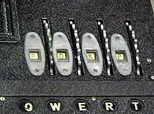Another accessory was the remote lamp panel Fernlesegerät. For machines equipped with the extra panel, the wooden case of the Enigma was wider and could store the extra panel. A lamp panel version could be connected afterwards, but that required, as with the Schreibmax, that the lamp panel and light bulbs be removed.[16] The remote panel made it possible for a person to read the decrypted plaintext without the operator seeing it.