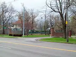 Entranceway at Main Street at LeBrun Road is a suburban residential subdivision entranceway in Amherst, New York, USA. It was built about 1920 by Goode & Sickels, Realtors. It is located on Main Street (New York State Route 5) at Eggertsville in the town of Amherst within Erie County. It consists of half-height brick masonry walls, brick masonry posts, and accent light fixtures located on either street corner.[2]