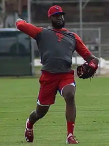 On December 15, 2017, the Padres traded De Los Santos to the Philadelphia Phillies in exchange for Freddy Galvis.[9] He began the 2018 season with the Lehigh Valley IronPigs of the Class AAA International League.[10][11] He was the Phillies Minor League Co-Pitcher of the Month for April.[12] De Los Santos was selected to represent the Phillies at the 2018 All-Star Futures Game.[13] He was also elected to the AAA All Star Game.[14] With Lehigh Valley in 2018 he was 10-5 with a 2.63 ERA (2nd in the International League), with 110 strikeouts in 126.2 innings, a WHIP of 1.16 (2nd), and an opponents batting average of .226 (3rd).[1][12]
